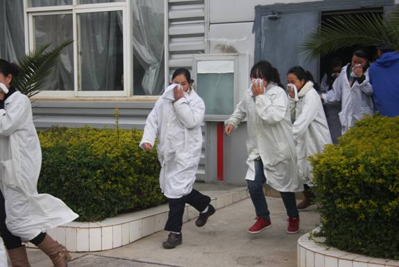 2011年12月17日上午,特安吶公司2011年度消防演練拉開帷幕,首先進行的是第一科目:應(yīng)急救護培訓,文山州紅十字會老師講授了應(yīng)急救護方面非常實用的現(xiàn)場急救知識,并現(xiàn)場互動,向員工示范了心肺復(fù)蘇、人工呼吸、八種包扎法等急救手法,獲得了員工熱烈的掌聲。9時50分,隨著一聲刺耳的警報拉響,第二科目應(yīng)急疏散拉開序幕,只見大家紛紛用口罩、毛巾捂住口鼻,從辦公室、車間有序疏散到安全地帶,整個過程僅用時10分鐘。指揮部馬上下達第三科目:傷員救護演練。各部門、車間開始清點人數(shù),發(fā)現(xiàn)提取車間有10人被濃煙困于車間內(nèi),剎那間,制劑車間28名救護隊員如離弦的箭一般沖向提取車間,不一會兒,救護隊員就抬著、攙扶著傷員出來了,傷員們有的頭上纏繞著繃帶,有的手上包扎著止血帶,大家迅速把傷員們送到了安全地帶。緊接著,分裝車間、行政管理人員也進行了傷員救護演練。最后,第四科目火災(zāi)撲滅演練開始了,只見濃煙滾滾,烈焰升騰,義務(wù)消防隊員們提起滅火器,對準烈火一陣掃射,火魔被撲滅了………11時,預(yù)定的消防演練科目全部結(jié)束,本次演練圓滿成功。