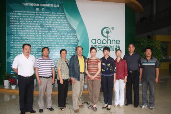 2012年5月15日,美國貝佳天然藥業(yè)公司總裁王儉美、CEO潘平微夫婦在州生物三七局副局長胡宗紅的陪同下到公司參觀。公司田慶副總、熊文福副總在展示廳熱情接待。王總裁夫婦參觀了公司展示廳,詳細(xì)了解了公司的發(fā)展歷程和產(chǎn)品情況。并深入到提取車間,參觀三七總皂苷生產(chǎn)工藝流程。